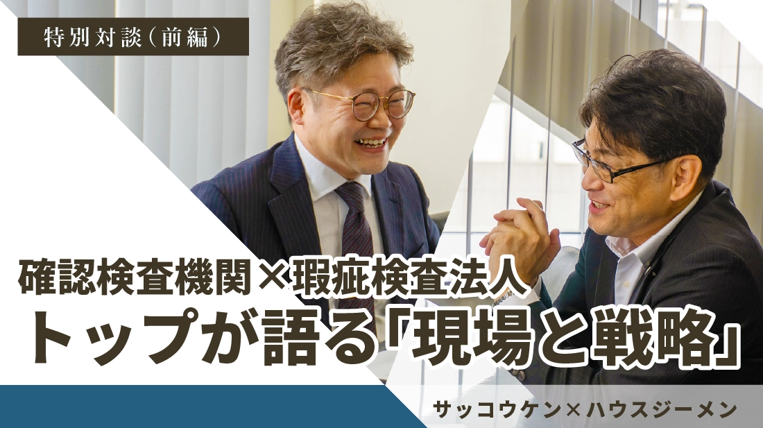 北海道トップシェアの確認検査機関、株式会社サッコウケンの代表取締役社長 兼平 久氏、常務取締役 川村 宏二氏と、MSJグループの株式会社ハウスジーメン 代表取締役社長 道下 佳紀が、現場の課題と未来戦略について対談しました。